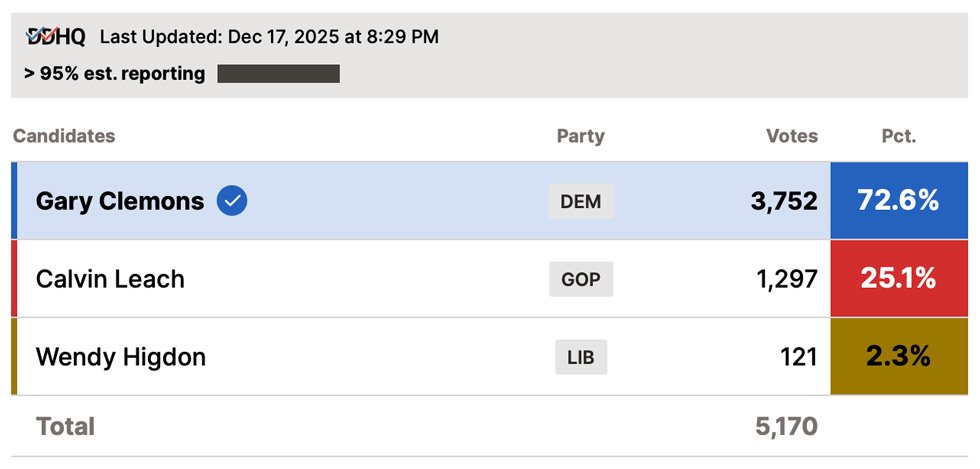 And respond they did. Clemons’ 47.5-point margin doesn’t just hold the seat—it shatters previous benchmarks. In 2024, David Yates took the seat by 20 points. Kamala Harris carried the area by a mere six. This wasn’t just a victory; it was a landslide in a low-turnout race of just over 5,000 ballots.