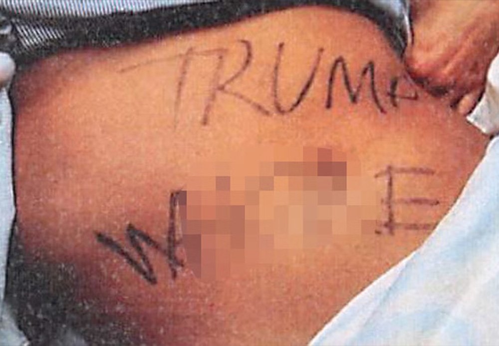 Natalie Greene, 26, reportedly tied her own hands and feet with zip ties in the woods, with the help of an accomplice, and wrote the words “Trump w***e” on her stomach. According to authorities, she also had “[Federal Official 1] IS RACIST” written on her back.