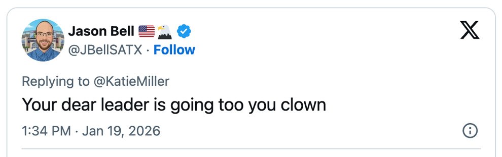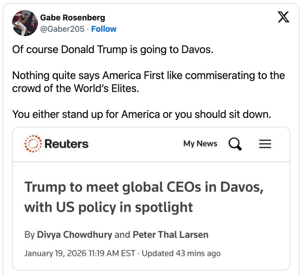 Within minutes, users on X swarmed Miller’s post, pointing out exactly that. “Trump is also going to Davos this week but whatever,” one commenter replied bluntly to Miller’s insult. Critics didn’t stop there, repeating her own phrasing with Trump’s name swapped in, exposing the disconnect in her attack.