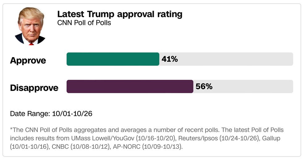 And that’s not an outlier. CNN’s “Poll of Polls” average, updated Wednesday, shows Trump’s net approval even lower, at negative-15 points (41 percent approval and 56 percent disapproval). “Down a net 14 points from our first average of the term in early February,” Dale noted.