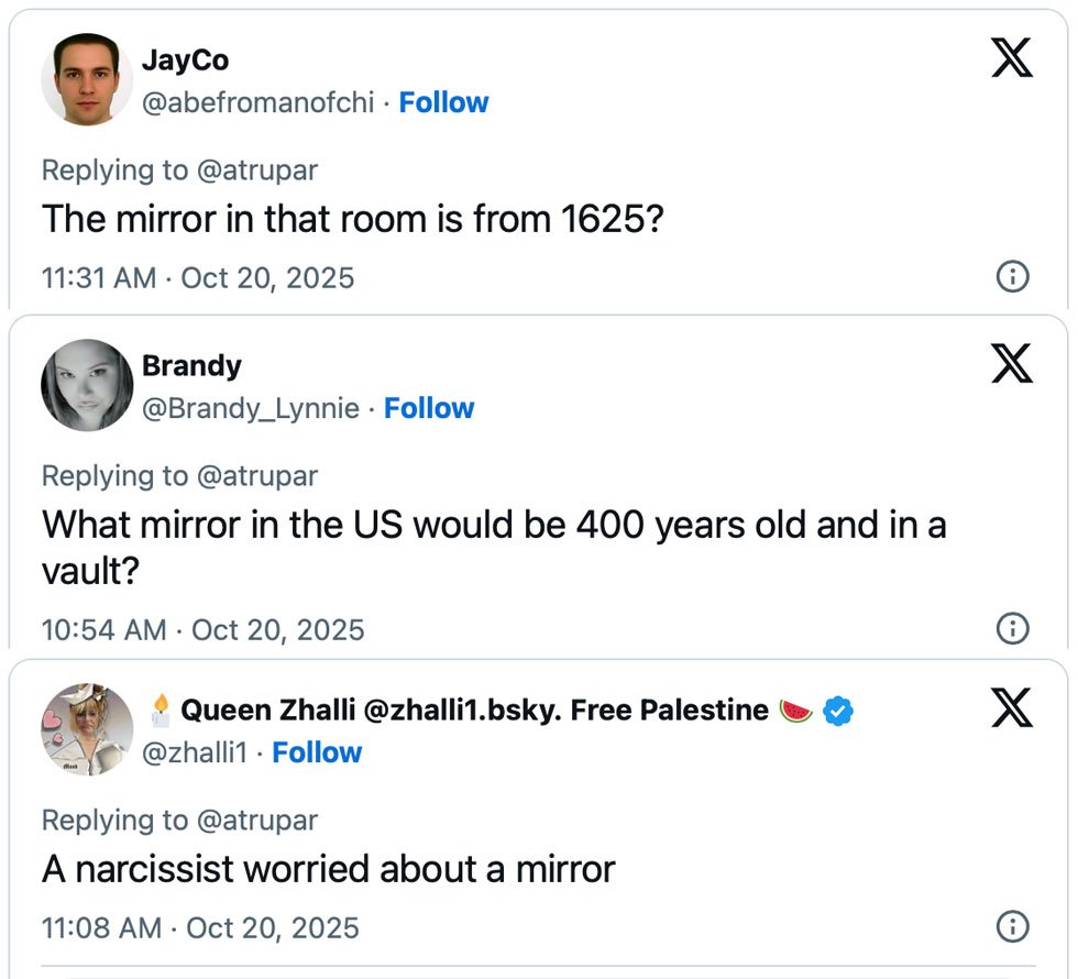 Because nothing says “presidential priorities” like a priceless mirror taking center stage during international diplomacy.
