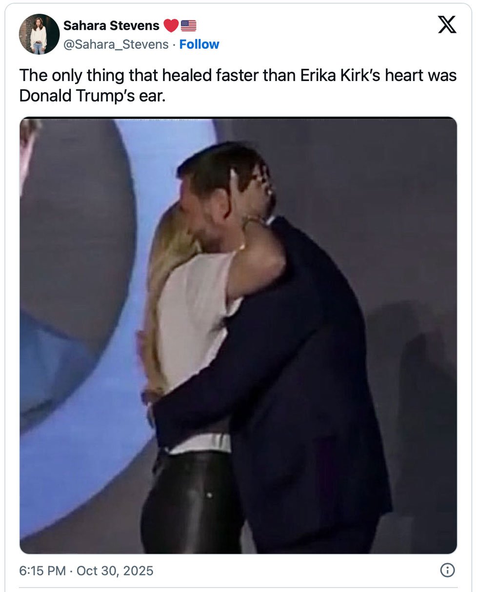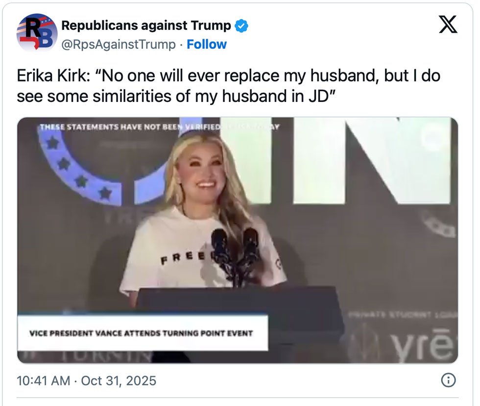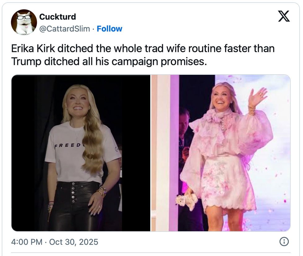 Whether Erika Kirk was genuinely emotional or just “playing MAGA,” the bigger message might be this: in 2025, you can’t believe everything that trends — especially when everyone’s making money off the performance. (Watch the clip and some of the reactions below — including a few AI-generated curveballs.)